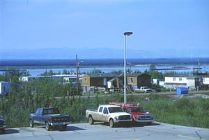 この景色のあまりの大きさに「もったいない。こんな広い土地が手つかずに残っているなんて!」と日本的感覚で見てしまう。でも、この大自然が野生動物にとっては地球上に残された最後のユートピアなのかも知れない。飛行機が高度を落としてきたときに飛行機の轟音から逃れるように大きな鹿が走っているのが見える。 難攻不落と思われていたアマゾンのジャングルも人間の手によって、ものすごいスピードで開発されているのを見ると眼下に広がる不毛の大地がとても愛しく思えてきた。 このまま大地が尽きるまで変化がないだろうと思われた眼下の景色に大きな変化が現れてきた。今までは一面平らだった地形にとてつもなく大きな断層が見えてきたのだ。飛行ルートの真下を境に東側と西側で高さが一気に違ってきたのだ。断崖の下側(東側)は、今までのような凹凸のない湖ばかりの景色に対し、断崖の上部(西側)は緑も多く見られるようになってきた。断崖の東端は大きく盛り上がり山脈になっている。飛行機の高度がぐんぐん下がりその山脈よりも高度が低くなったと思ったらノーマンウェールズ空港の滑走路に着地した。 飛行機も北に向かうたびに小さくなっていくが、空港も小さく小さくローカルになってくる。着陸と同時に燃料を入れる給油車、荷物を下ろすためのトラックが作業をはじめだす。目の前でこのような作業を見るのはとてもたのしい。この楽しさをわかるのは、小さいときからいろんな乗り物のおもちゃで遊んでいた男にしかわからないぞ!と思いながら作業を見続けていた。 いつの間にか滑走路の上には僕一人が取り残されていた。あわててロビーに出たものの、この空港に降りた人には100%お迎えの人が来ておりピックアップに荷物を積み、楽しそうに歓談しながら車に乗り込みどこかに消えてしまった。またしても一人取り残されてしまった。周りを見回してもレンタカーやホテルの文字が見えない。イエローナイフの時のように・・・。 | ||||||