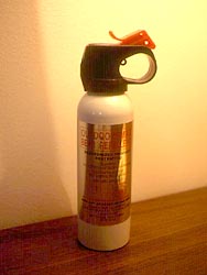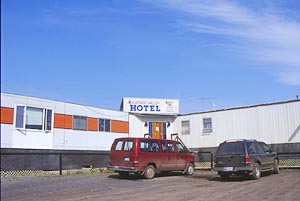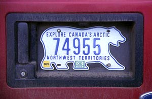 荷物を部屋に置き、早速、この町の散策に向かおうとすると、先ほどの女性が「歩いていくんだったら、このクマよけスプレーを持っていきなさい。」と小型消火器のようなスプレーを持たせてくれた。そう言えば、ノース・ウエスト準州はクマの国だったんだ。自動車のナンバープレートもクマの形をしている。すごい所に来たんだと、だんだんその気になってきた。 日本の山では、何度もクマに遭遇しているし、北海道ではクマに襲われた経験もあるのに、クマよけスプレーを持たされるとワクワクしてしまう。ちょっとクマに遭遇したいという気持ちも起こっている。 クマよけスプレーをリュックにぶら下げて歩くのは、ちょっとした冒険気分だ。石油採掘の小さな町ノーマンウェルズを歩くだけなのに・・・。 ホテルの前の道路は、この町一の幹線ロードでマッケンジードライブと言う名前が付いている。道路に沿ってカナダ一の大河マッケンジー河が流れている。あまりの大きさに対岸が霞んで見え、まるで、湖のような感じがする。とうとうと茶色く濁った水が流れている。この河の別名は、レッドリバーとも言うらしい。 この先200数十キロの所に今回の目的地フォートグッドホープの集落があるのだが、道路が無く、飛行機か目の前のマッケンジー河をボートで下るしか手段がない。ただ、冬季になると一面氷の世界になるので、スノーモービルでの移動が可能になるらしい。 |