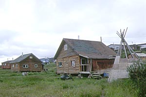 気を取り直して昼からの行動に出ることにする。ホテルの前は、村のコミュニティーセンターというか大きなグランドがあり、そのグランドの周りに彼らインディアンの家が建っている。区画整理など無く、それぞれが好きなように家を建てている感じだ。この集落を見ていて、この広大な北極圏の中の陸の孤島“フォートグッドホープ”に家を建てるのに土地の購入というのが必要なんだろうか? と思った。これって、あまりにも日本的かな? グランドの向こう側の丘の上に、この村には似つかわしくない大きな建物が建っている。ノーマンウエールズでも、そうであったように学校の建物がとても立派だったので、あの立派な建物も学校かも知れない。 ぬかるんだ道を歩いていると粘土質の土が靴の底につき、靴がずいぶんと重くなってきた。足を滑らせ坂道を上っていくと「CHEF TSELEHYE SCHOOL」と書かれた標識が入り口横に書かれている。塀も柵も無いのだが、窓も小さく日本の学校のスタイルとは全然違う。酷寒の地である為なのか、学校という物の考え方が違うからなのかは分からない。 建物の裏に回るとブランコや鉄棒、ジャングルジムがあり、子供のための学校だというのが分かる。それにしても、学校の中にも、どこにも子供の姿が見えない。僕の滞在していた6月末は夏休みだった。 |
