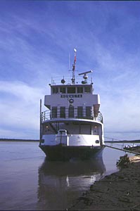 北極圏の長い1日が過ぎ太陽が西の空に沈んでいこうとしている。時計を見ると夜の十時を指している。しかし、いくら時間が経っても20度くらいまでの高度に沈むのだが、それ以上沈ずまず西の空から東の空へ平行移動していき、我々の感覚で言うところの夜明け時間から東の空に向かって日が昇っていく。太陽が頭の上で大きな円を描いて回っているのだ。ここ、北極圏にいると、24時間ずーっと太陽の動きを目で追いかけることが出来る。これが北極圏の“白夜”と言う僕にとっての夢物語だったのだ。 着いた日は、時間の観念がつかめなかったのが二日目になると太陽の位置でどんな時間帯にあるのか、少しは理解できるようになってくる。 日本でなら日の出前の時刻の頃、マッケンジー川を見つめていると川下の北極海の方から一艇の白い船が上ってきた。日本では、まず見かけることのない形の船で、カヌーなどを積み込んだとても雰囲気のある船だ。 村の人たちは全く興味を示さないのだが、何にでも興味津々の僕は、遡ってくる船をずーっと目で追いかけていた。コースがだんだんこちら側に寄ってきている。船着き場があるんだろうかと船が近づいた所に行ってみると川岸にロープで寄せられているだけで、乗客の人たちは梯子で乗り降りしている、なんともワイルドな状況だ。 船から下りてくるのは、高齢の夫婦ばかりだ。乗客のドイツ系カナダ人のご夫妻に話しかけると、カナダトロントから一ヶ月くらい掛けて北極海から、このマッケンジー川を巡りイヌイットやインディアンの集落を見物しているようだ。ディズニーランドの外輪船でインディアンの村を見て回る、あの雰囲気そのままのクルージングが現実の世界で行われているのだ。 船の乗客達が、僕のことをこの村の人間ではないというのが分かったらしく「ここのインディアンは友好的じゃないのか?」と聞いてきた。今まで立ち寄った村では、船が着くとお土産を売るインディアン達が寄ってきたのに、この村では誰も寄ってこないので気味悪がっているようだ。 この村は、観光客が来るような所ではなく、お土産を作る人や売る人が居なく、観光船や観光客に興味がないだけなのだ。2時間ほど滞在しただけでこの船は舫を解いて川上に向かっていった。 北極圏では、 深夜の時間帯に船が着き、観光客が下船し出航していくと言うのが太陽の下で行われていたのだった。 |
