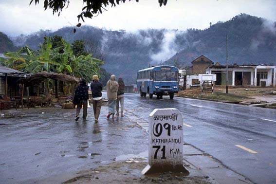 | ネパール語と英語の表記、カトマンズからの距離が分かった。 |