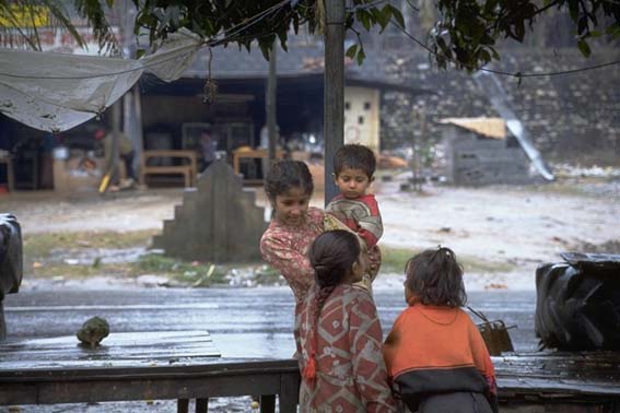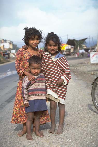 | ネパールでは、子供が子供の面倒をよく見ている。 |