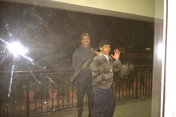 | 最初に出迎えてくれたネパールの人は、銃を担いだ軍人だった。 でも、彼らの表情にネパールの優しさを感じられた。 |