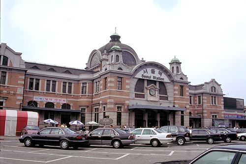 | 韓国国鉄の中央駅を探し求めてソウルの街を歩くと 高層ビル群の中にクラシックな駅が見えてきた。 東京駅に似たレンガ造りのクラシックな建物が韓国最大の鉄道駅ソウル駅だ。 線路をまたぐ形で建っているので、正面入り口は建物の横に位置し、 駅舎が小さく感じられたが全体像は大きな駅だ。 韓国にもフランスの世界最高速のTGVが施設されるだが、 その時にも、この重厚な建物が残っているといいなぁと思う。 建物に入り、階段を数段上ると本当のコンコースが目の前に広がっている。 ぐるり回りを見渡すとコンコースの片隅に切符売り場がある。 今回の旅はソウルから、いろんな都市を訪ねてみようというのが目的の一つだったので 早速切符売り場に向かう。 切符売り場を一見した時の感じでは日本の駅と同じような感じだったので 切符を買うのに何の苦労も無いように思えたのだが、 行き先や料金表を見た時、あのハングル文字のオンパレに絶望的になってしまった。 今までに訪れたどの国よりも鉄道での一人旅が難しいように思った。 周りを見渡しても我々と同じような容姿の人が歩き、日本に居るのと同じ雰囲気なのに、 どうしてこんなにコミニケーションが難しいのだろう。 とソウル駅の切符売り場で立ちすくんでしまった。 (日本に帰って聞いた話によるとローマ字表記も多いとのことだった。 ハングルにあがってしまい冷静さを失っていたのかも知れない。) |