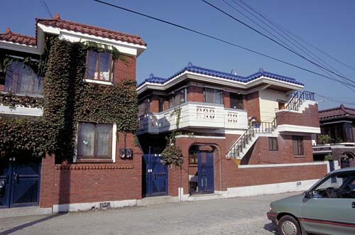 | ソウルの街もビジネス街を離れると、表通りには商店が多いが 裏通りに入ると住宅街が広がっている。 住宅街を歩くと韓国と日本の違いをはっきり見ることが出来る。 日本の住宅は木材が大きな部分を占めているが韓国の住宅は 赤いレンガ造りが圧倒的に多い。 童話「三匹の子ぶた」に出てくるレンガ造りの家が羨ましかったように 立派なレンガ造りの家が並ぶ韓国の住宅がとても素晴らしかった。 韓国の友人に「韓国は大家族主義で 一軒の家に3世帯が住んでいるケースが多いんですよ」と教えてもらった。 経済的にも独立するまで親が面倒を見るケースが多いらしいく、 家長の権威は絶対らしく、このような環境が 儒教の教えを現在まで強く引き継いでいるのだろう。 また、家の造りも寒さに対する造りが重要で、窓も二重になっている家が殆どだった。 これに引き替え日本の家屋は暑さに対する備えが主に造られ開放的なイメージなのだが、 全体的な雰囲気がすごく貧弱なように思える。 日本は豊かな先進国という自惚れを持っていたのが、 訪れる国々で豊かな生活を目の当たりにすると、 僕の住んでいる国、日本とはどんな国なんだろうと思うことが多い。 人口集中が激しく人口密度も相当厳しくなってきており、 この写真のような立派な一軒家はソウルの中心部には 成り立たない時代が来ているようで。 韓国も韓国らしさを維持していくのが 難しい時代になっていくのかなと思うようになった。 |