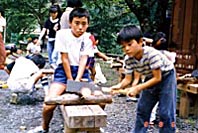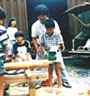 しんどい作業も、目の前にカタチが出来上がってくると達成感の方が勝ってみんなやる気満々。 危なっかしかったノミやチェーンソーもみんなが使えるようになり、みんなの気分はログビルダー!