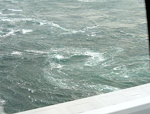 | 今、世界一の吊り橋を通過中(明石海峡大橋) | 鳴門海峡では、渦潮も見えました。 | ||