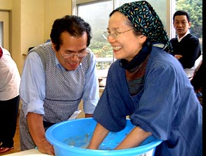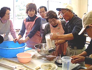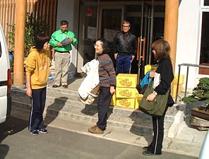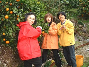 | 今年の夏(2003年)、「気の会」の仲間になられた恵美子さんのお誘いで、 徳島県のふるさと交流事業・勝浦町を訪ねる旅に行って来ました。 都会の人にとってのふるさと探しの願望と、 地域の活性化が合体したプロジェクトです。 大阪を出るときから大阪へ帰ってくるまでのあいだ、楽しい行事がてんこ盛りでした。 西国霊場巡り、コンニャク作りの調理実習、ミカン狩り、阿波踊りなどなど・・・。 あっというまの一泊二日の旅でした。 いろんな行事も楽しかったのですが、 地元の人たちとのふれあいがいちばん印象に残っています。 ふるさとのないわたしにとって、 四国・徳島に“ふるさとができた!”と、 とても印象に残る旅になりました。 二ヶ月ほど前の「ミカン狩りに行かない?」とのお声がけが、 思いもよらない人と人との出会いに実りましたね。 Yasuko Yoko Emiko |