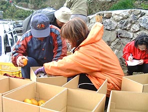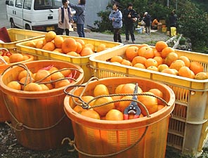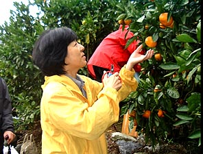 | あんたたち、いっぱい取りなさいよ。 | ミカン狩りって、たのしいよ! | ||
