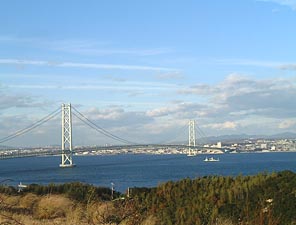 | 町長さんに見送られて・・・。私たちVIPね! | 感動の涙が枯れるころ、明石大橋が目に入ってきました。 |