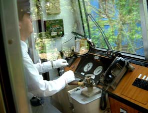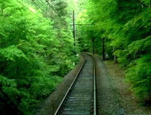 | 新緑のトンネルを通って | 電車って、ここからの景色が最高なんよね! |