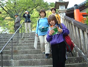 | 鞍馬寺はね、宝亀元年創建で・・・ガイドみたいでしょ | 昔はここも山の中だったんでしょうにすごいわね! |