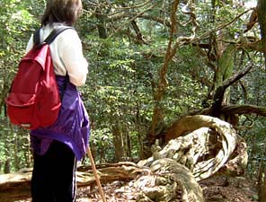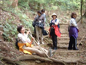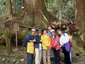 | こんな大きな樹にはきっと“気”があるのよ! | さあ、ここから山登りよ、杖の使い方教えるわね |