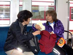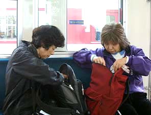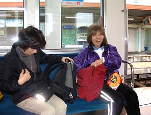 | どうしたの、華代子さん乗らなくちゃ! | あの〜、忘れ物したかも知れないの |