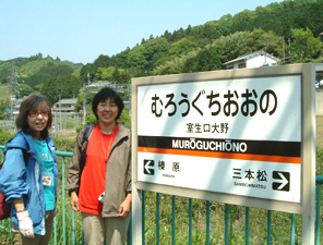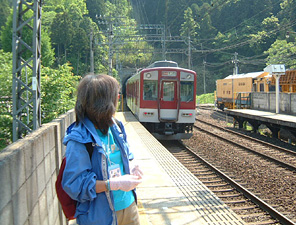 | 快晴の室生口大野駅に到着、私たちが晴れ女です! | 電車は行ってしまう、されど私は残る・・・ |