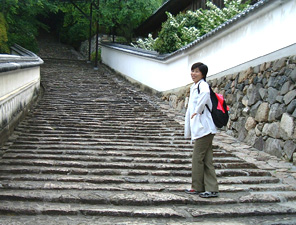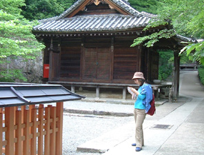 | 気弱な私は、ここから見とこっと | 室生寺に到着!記念撮影。 直美さん、きまりすぎてない? |