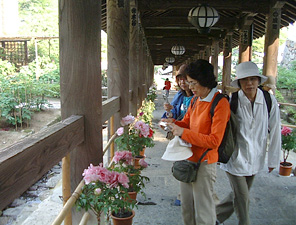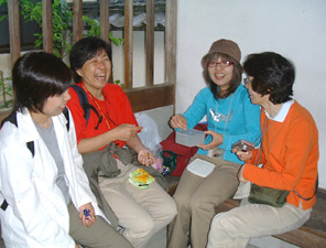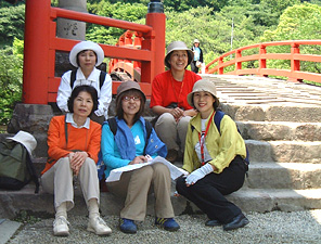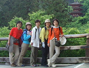 | 第二次3daysチケットの最後の旅は奈良県東部に位置する 女人高野として名高い“室生寺”に、 そして欲張りな私たちは、チケットを最大限使ってみようと ボタンの花で有名な“長谷寺”にも足をのばしました。 シャクナゲやボタンの花を見に行こう!と訪れた二つの寺院は、 私たちにステキな日本の歴史・文化を披露してくれました。 ニュースで、室生寺の五重塔が倒木で大きく壊れたと聞いたときには、 だいじな日本の文化財が壊れてしまった!と心配していたのですが、 完璧に復元された五重の塔が私たちの目の前に現れてくれました。 今まで比較的人の少ないところに行ってたので、室生寺の人の多さには、びっくりしたのは確かです。 でも、この室生寺は私たちだけのものじゃない!ここを訪れるみんなに見事に再生された 姿を見てもらうんだと私たちを呼んでくれたんだ!と思いました。 一方、長谷寺は閉門間際でもあって、人影もない静かな雰囲気を楽しめました。 ボタンの花もピークは過ぎたとはいえ、美しい花が私たちの目を楽しませてくれました。 また、時間が遅かったことが幸いし、僧侶達の夕方の「行」にも遭遇することが出来ました。 何処までも、私たちって運がいいんだろうと思えた一日でした。 でも今回の旅の一番ステキなことは、3dayチケット仲間に 厚子さんが加わったことです。 ミーハーに安く旅をしようと始まった3dayチケットの旅も 振り返ってみれば、日本文化のすばらしさを堪能する 旅だったんです。 これからも続くでしょう、私たちの3dayチケットの旅。 発見いっぱいの日本文化探訪・近畿のすばらしい自然・ そして、すばらしい仲間とのふれあいの旅・・・。 kayoko naomi yasuko yoko atsuko |