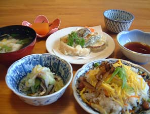 | さぁ、宿に着いたわよ。 | 「さかもと」の昼食って、こんなに豪華なんです。 | ||||||||||