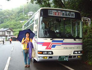 | ワンマンバス感覚のディーゼル機関車に乗ると、次は大阪行きのバスが出る徳島駅に・・・ 「楽しかった四国の旅、最後の最後までしっかり私の目に焼き付けるんだ!」 と、恵子さんはずーっと車窓に流れる景色を見つめていました。 |