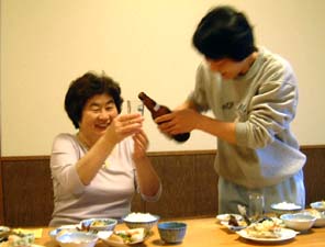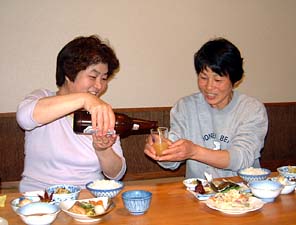 | 先輩、お疲れさまです。一杯どうぞ! | 何言ってるのよ、チョット先に生まれただけでしょ! あなたも一杯いきなさいよ! |
