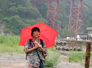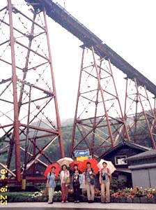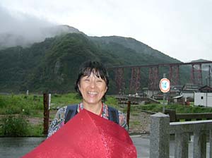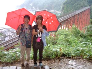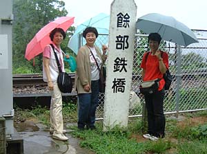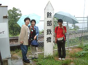 | もうすぐ、この鉄橋とお別れ、もう一度記念撮影しようよ | 後ろの女性も愛知から、今日は民宿で泊まるんだって | ||