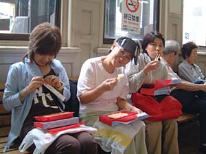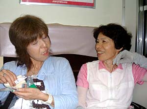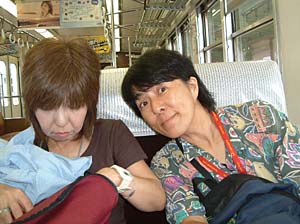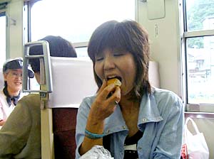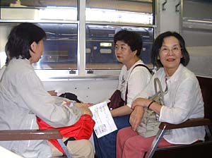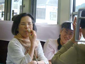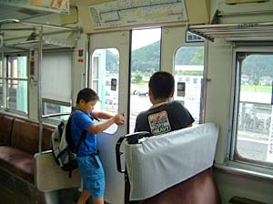 | あっ、もう石生や!僕らここで下りるわ | おばちゃんら、楽しい旅しといでなぁ! アリガトウ! | ||