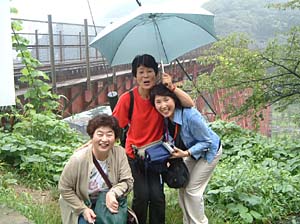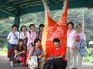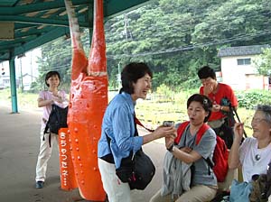 | 直美さん、それ食べれないのよ! | 餘部アタック隊、ここで事前の記念撮影しておこう! | ||