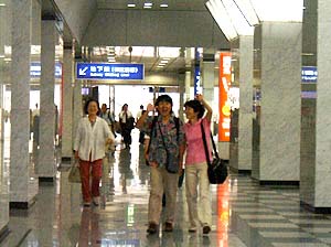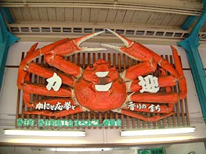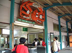 | 改札口の上に、なっ、なにやら見たことのある物が・・・ | カニの作り物といえば、大阪が本場じゃないの? | ||