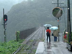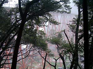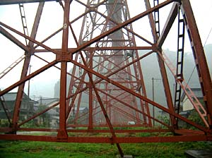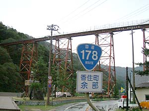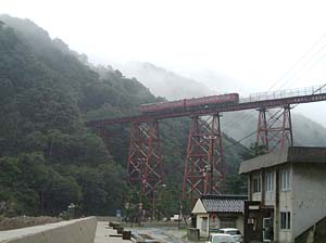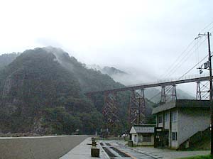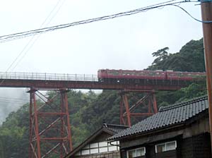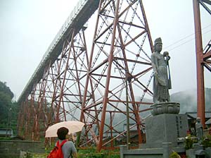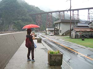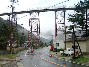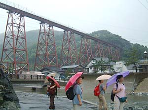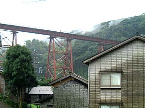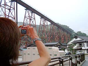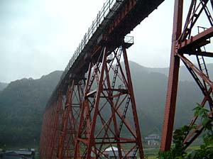 | 橋の真下に来てみたら、何かきゃしゃな感じが・・・ | こんな所を列車が走るんだから、すごい所ね。 | ||