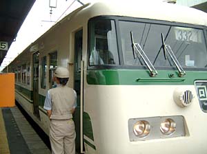 | 後ろ乗り、前下り。これはほぼ日本共通ね | 出発進行!さあ、またJRの旅が始まるのよ! | ||