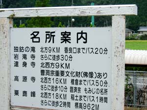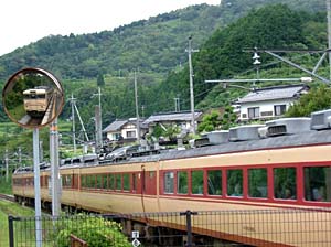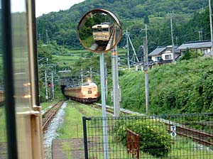 | あっ、単線のすれ違いよ。いつも向こうが優先ね! | 名所案内、何処も駅から遠いのね。 | ||