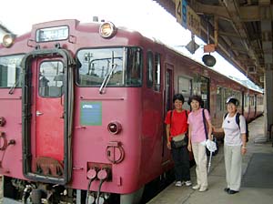 | あっ、特急丹後エキスプローラーや! | おばちゃんら、おもしろいなぁ!各停に乗ったりして | ||