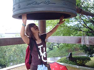 | うわぁ〜、鐘の下に入ったよ! | お寺の鐘で遊んだら危ないんだって!グスン | ||