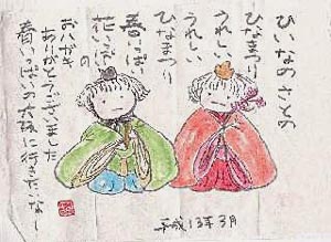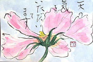・東京都の早川恭子さんから道子さんへの絵手紙です。“安子の部屋”も日本中に広がって行くみたいで楽しいですね。いろんな所からのお便りをみんなで楽しませていただいております。2001年3月6日 yasuko