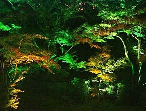 | 夜もわたしたちを歓迎してくれた高台寺 池のライトアップの美しさに感激! |