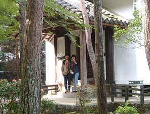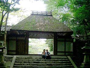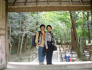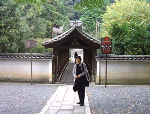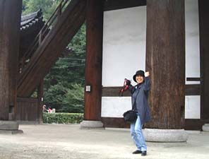| 閉門過ぎて注意されながら撮ってもらった記念写真、 誰もいなくなった東福寺 |