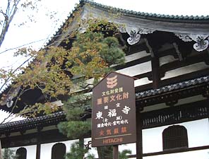 | お昼もとらずにたどり着いた東福寺、頑張ろう! | しょぼこい紅葉の向こうに東福寺の回廊が |