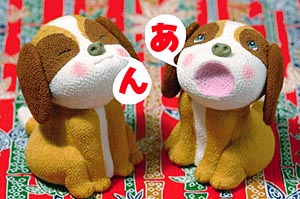 2006年 戌年 「なにごとも「阿(あ)」「吽(ん)」の呼吸でいきたいものですね 日本には「あ」と言えば「ん」と答える、阿・吽の呼吸という言葉があります。 西に疲れた母あれば 行ってその稲の束を負い 南に死にそうな人あれば 行って「怖がらなくてもいい」といい、北にけんかや訴訟があれば 「つまらないから止めろ」といい・・・そういう者に 私はなりたい(宮沢賢治より) |