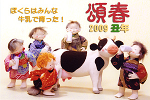 2009年 丑年 ぼくらはみんな牛乳でそだった! 干支の中で私ほどの働き者はないのかと自負しております。 現在でも子供の成長を支えているのは、やっぱり私たちでしょう! |
