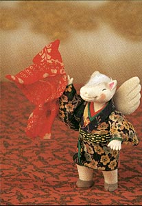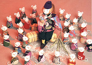 1996年 子年 「子(ね)の刻のお祭り」 ねずみ算、と言われるように多産の象徴とされるねずみと、私たち日本人の主食のお米。 どんなに人口が増えても、たっぷりと食料のある地球でありたいですね。 |