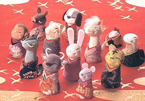 1995年 亥年 「しんがりを勤めますが、どうぞよろしく。」 これからも登場してくる仲間達です。 |