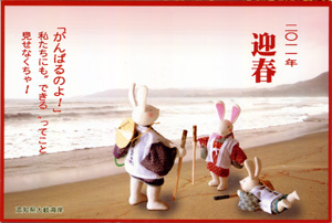2011年 卯年 人生?卯生?一度は思いっきりがんばらなくちゃ! ウサギとカメの競争でもウサギは負けちゃうんですよね。 一度は、最後まで気をぬかず頑張ってみましょう! 本当のウサギの姿って走りの名人?ですよね。 |