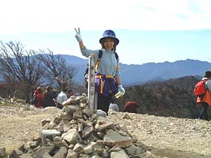 | 振り返ると感激の日出ヶ岳が・・・ | サポート隊の妹尾さんも一緒に記念写真、パチリ! | ||