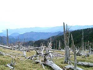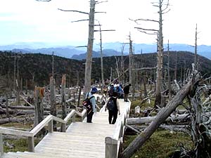 | 正木ヶ原の倒木林帯にさしかかる | すごい光景に「わぁ〜!」 | ||