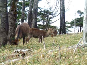 | 野生の鹿がすぐ目の前に! | 「見て、見て、野生の鹿よ!」「写真に撮ろう!」 | ||