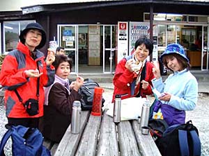 | 頂上に向けての腹ごしらえ | なんだ坂、こんな坂、頑張るぞ! | ||