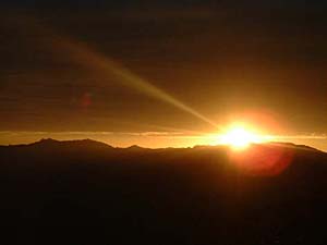 | バスからの景色、刻々と様子が変わっていきます | 山を降りる頃には夕陽が稜線に消えていきました | ||